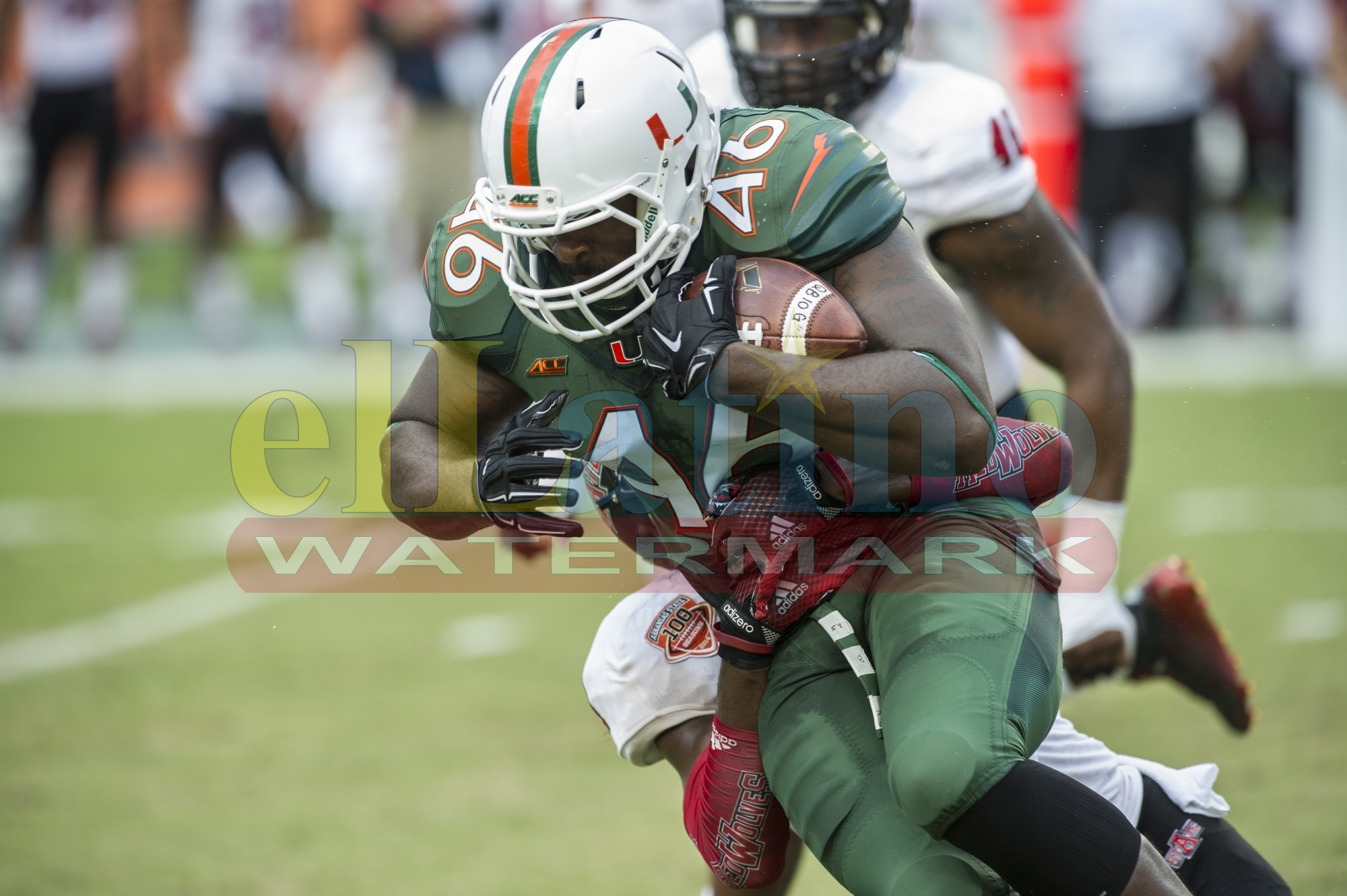 Miami-Hurricanes-tight-end-Clive-Walford-46-brings-in-a-1st-half-catch-during-a-NCAA-football-game-between-the-Arkansas-State-Red-Wolves-and-the-University-of-Miami-Hurricanes-at-Sun-Life-Stadium-in-Miami-Gardens-Fla.-on-Saturday-Sept.-13-2014.Photo-Don-Edgar