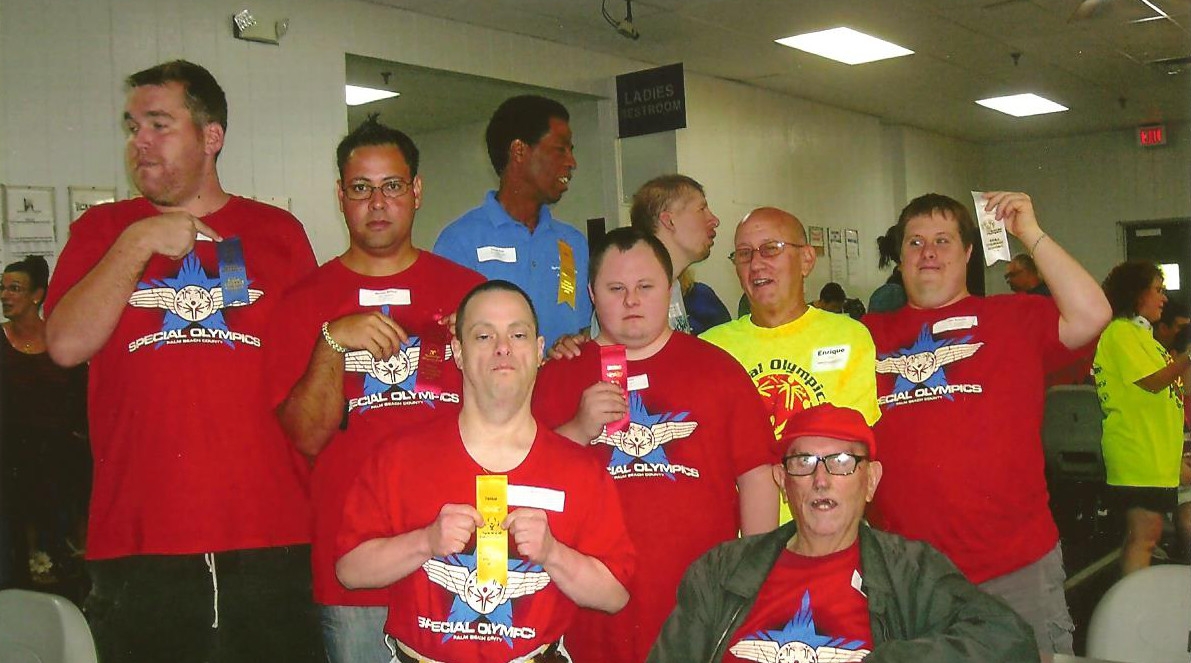 El-Hno.-Enrique-Sobrino-de-los-Caballeros-de-Colon-con-un-grupo-de-las-personas-incapacitadas-que-el-y-su-esposa-Felicita-dirigieran-en-el-Torneo-de-bolos